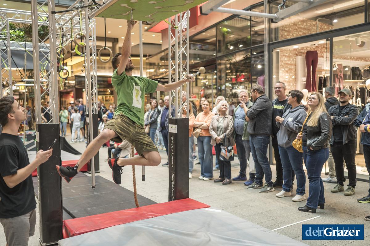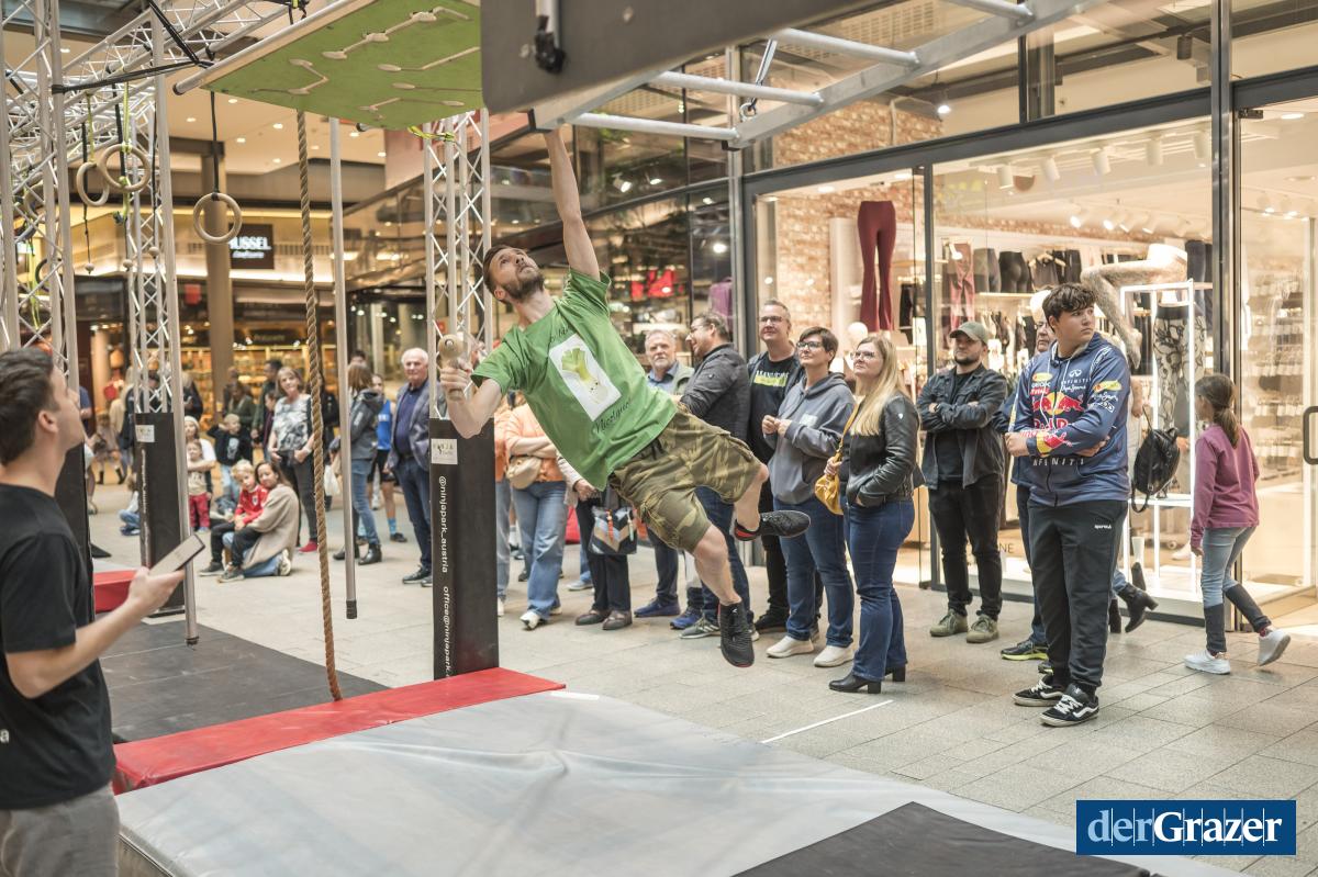 - Am Samstag wurde der Murpark zum Ninja-Parcours. Fotos: MURPARK