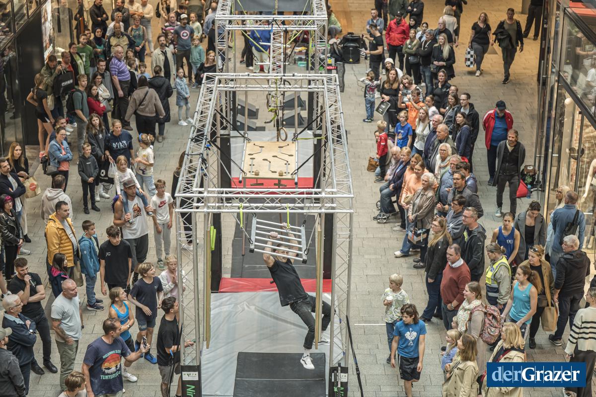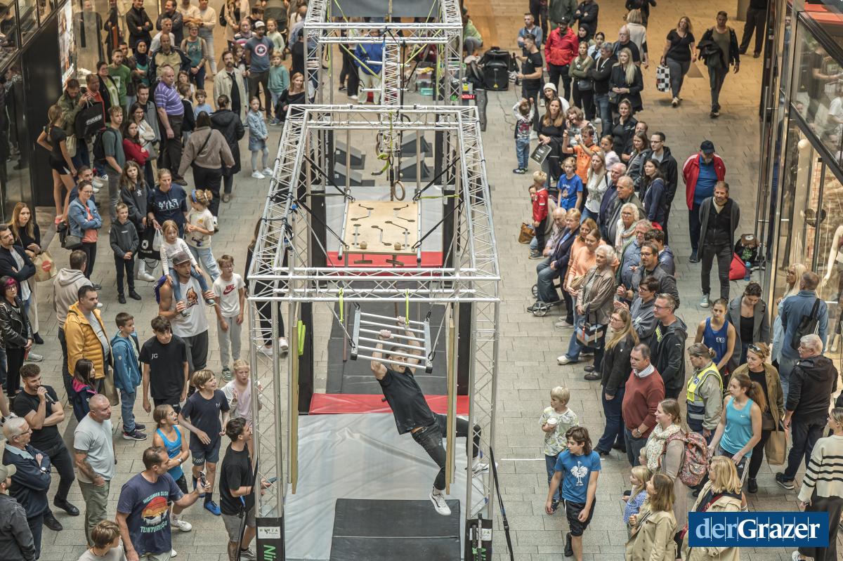 - Am Samstag wurde der Murpark zum Ninja-Parcours. Fotos: MURPARK