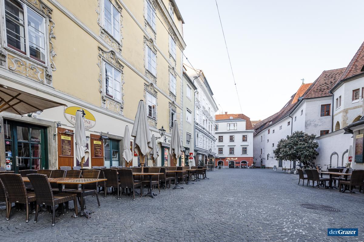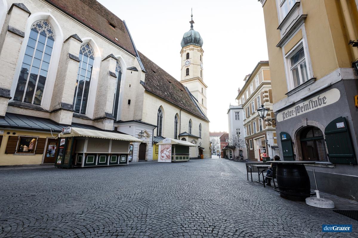 - Unser Fotograf Thomas Luef hat eine Runde durch das leere Graz gedreht.
